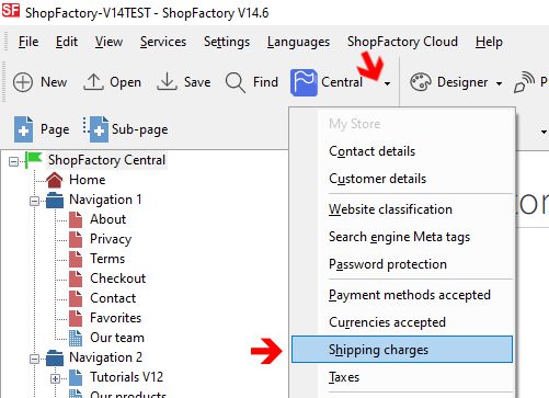 You can then open your ShopFactory Site Project file inside ShopFactory and go to CENTRAL / SHIPPING CHARGES: