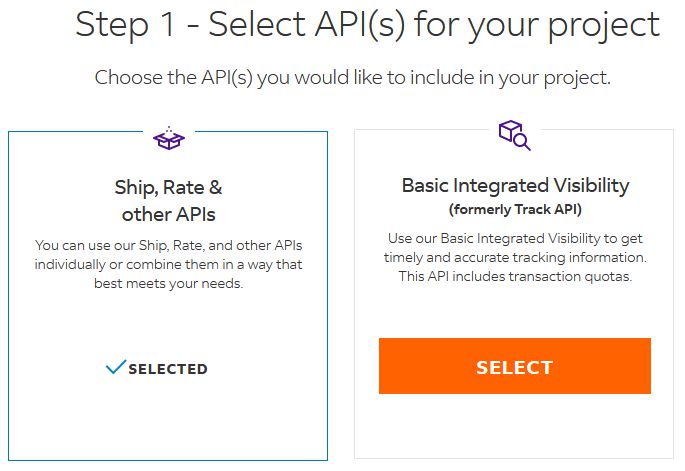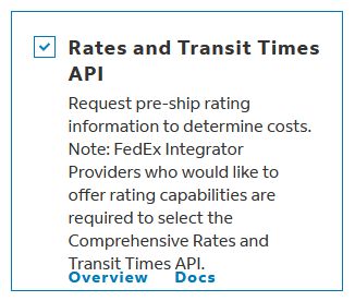 Scroll to continue again, and select only the “Rates and Transit Times API”: