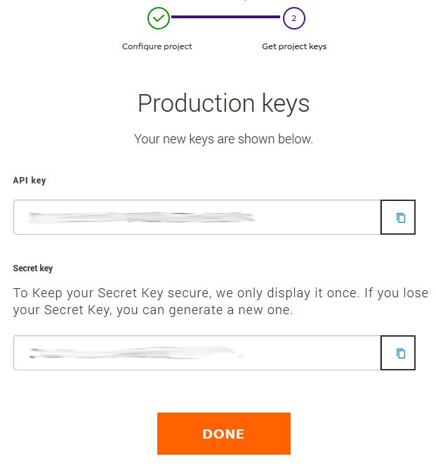 Select the PRODUCTION KEY (tab) near the top - ensure you are on the WEBSITE-COMPANY project you created earlier (it’s easy to miss, as show in this screen shot).