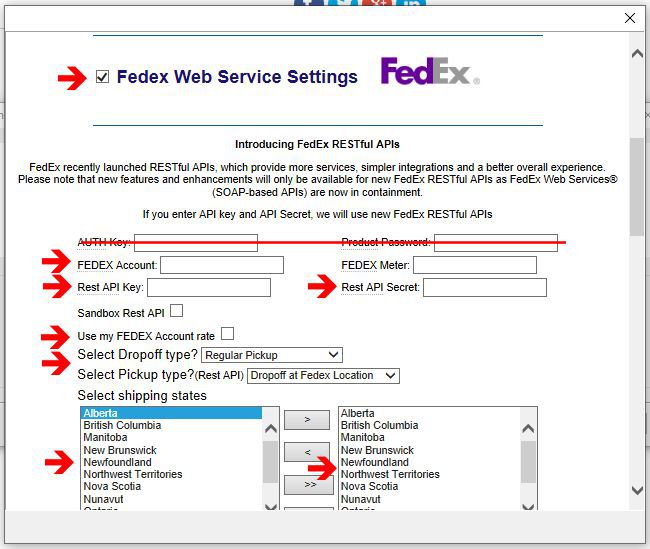 Enter in the your FEDEX ACCOUNT, RESTFUL API KEY and RESTFUL API SECRET KEY.